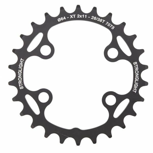 Ce plateau intérieur STRONGLIGHT est compatible avec les pédaliers à 4 branches (entraxe 64 mm) Shimano XT M-8000 et SLX M-7000.